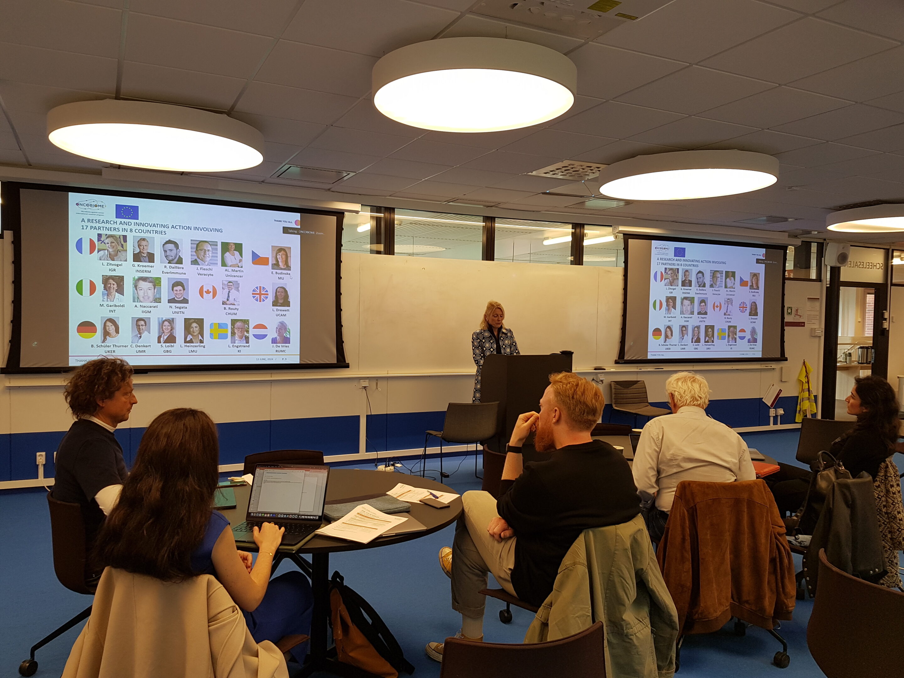 In June 13-14, 2024 the 5th General Assembly (GA) of the Oncobiome Project has been held in the Karolinska Institute organized by the local Partners, Dr Lars Engstrand and his team. The GA was preceded by five lectures open to the general audience held by experts on the field of microbiome, metabolism and cancer: Dr Dusko Ehrlich, Dr gianluca Ianiro, Dr Christoph Stein-Thöringer, Dr Ulrik Ringborg and Dr Willem De Vos.